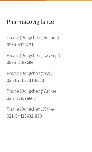 Yantai Dongcheng Pharmaceutical Group Co., Ltd. Add: No.7 ChangBaiShan Road, Yantai Development Zone, ShanDong, China Postcode: 264006 Tel: 86-0535-6391521\6391522